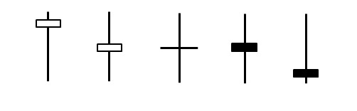 再來就是實體K棒又接近更小的形狀,看起來就好像十字,這形狀表示買賣多空雙方力道拉扯不明,或是目前並沒有明確的力道表示價格接下來的方向。