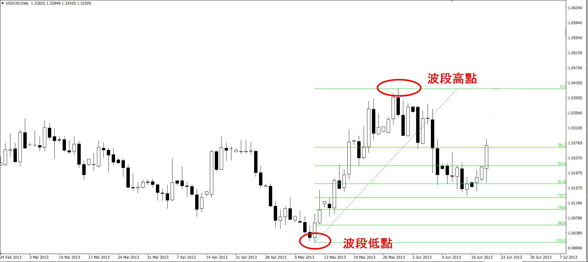 使用FIBO工具第一件最重要的事情,就是必須知道波段的高點以及低點的價位。