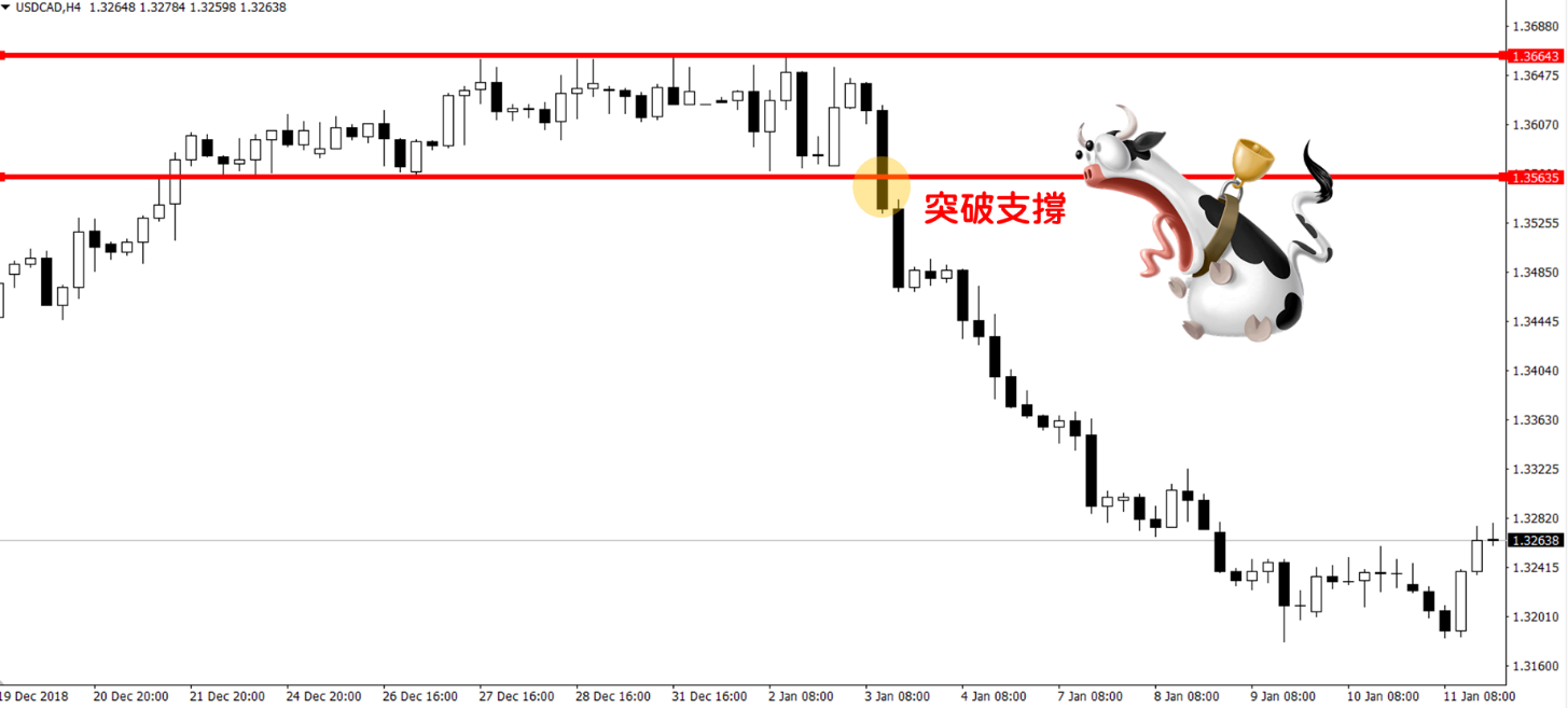 突破代表價格衝出某種交易區,例如壓力支撐點(區域),斐波納契水平位或趨勢線...等等。