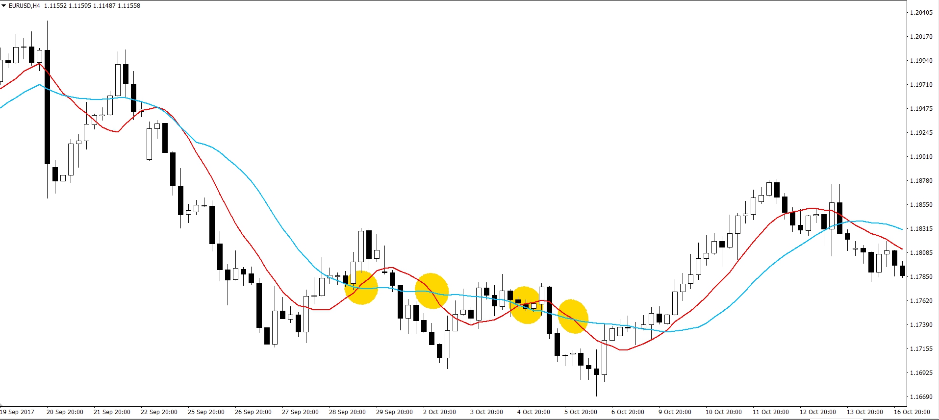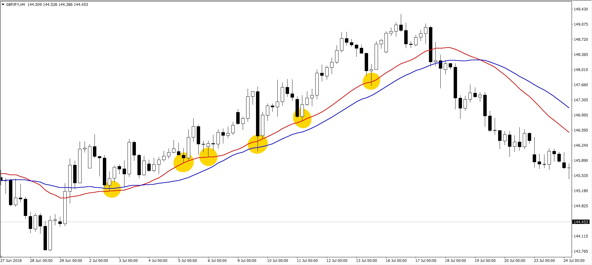 你所要做的就是在你的圖表上繪製幾個移動平均線,然後等待「交叉」信號。