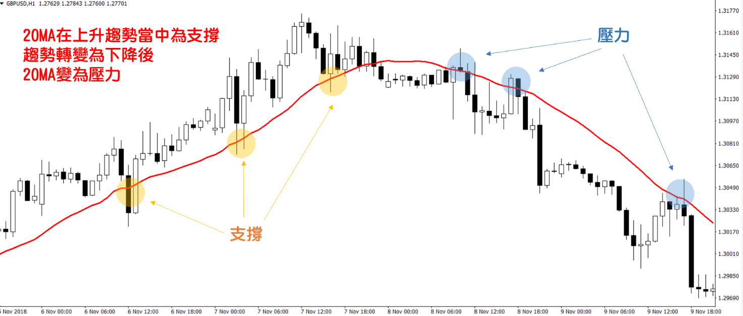 現在你已經學會移動平均線可以起到壓力和支撐的作用。
