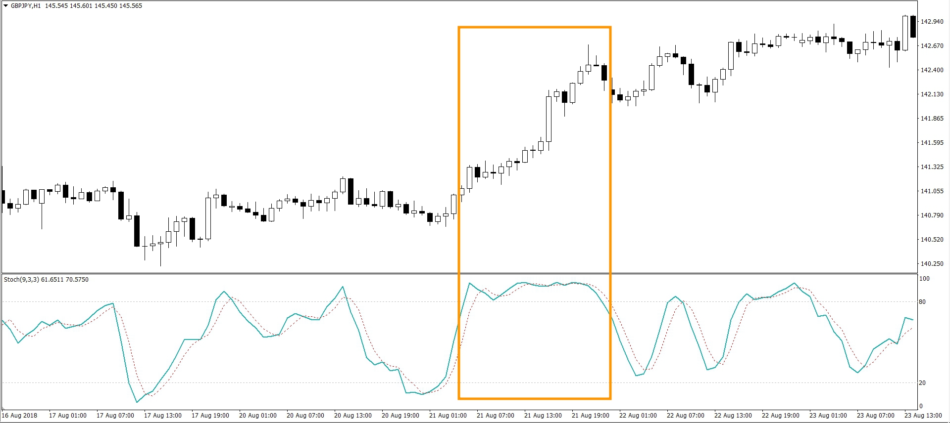 當隨機指標線在80以上時,則意味著市場處於超買狀態。