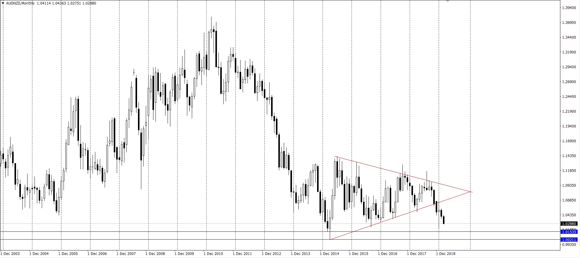 2019年3月澳幣兌紐幣的價格走勢圖(月圖)