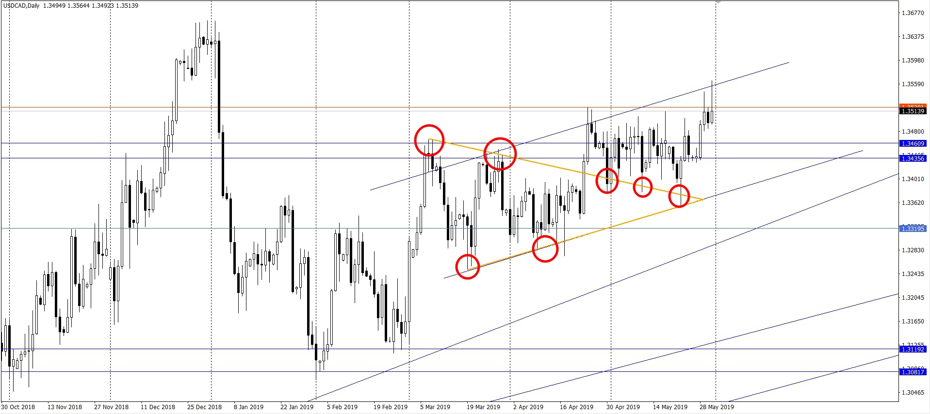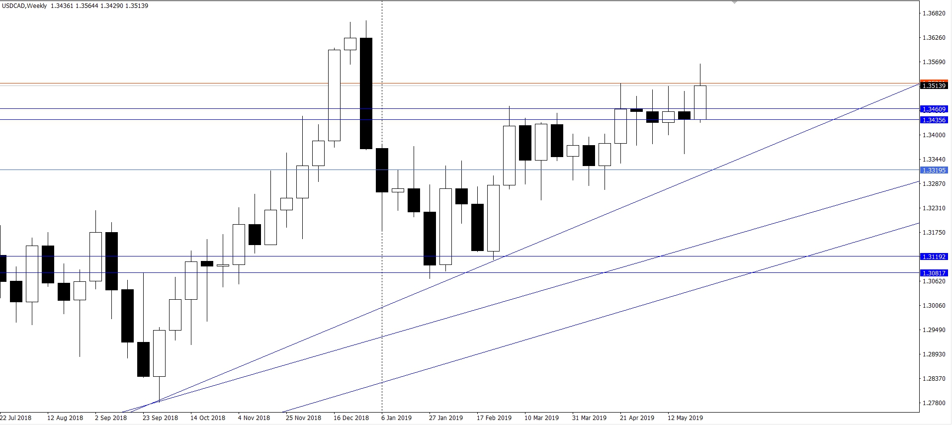 2019年6月美元兌加幣的價格走勢圖(週圖)
