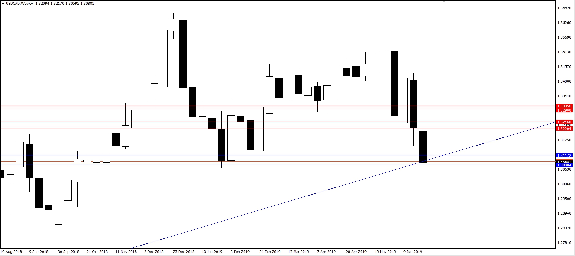 2019年6月美元兌加幣的價格走勢圖(週圖)