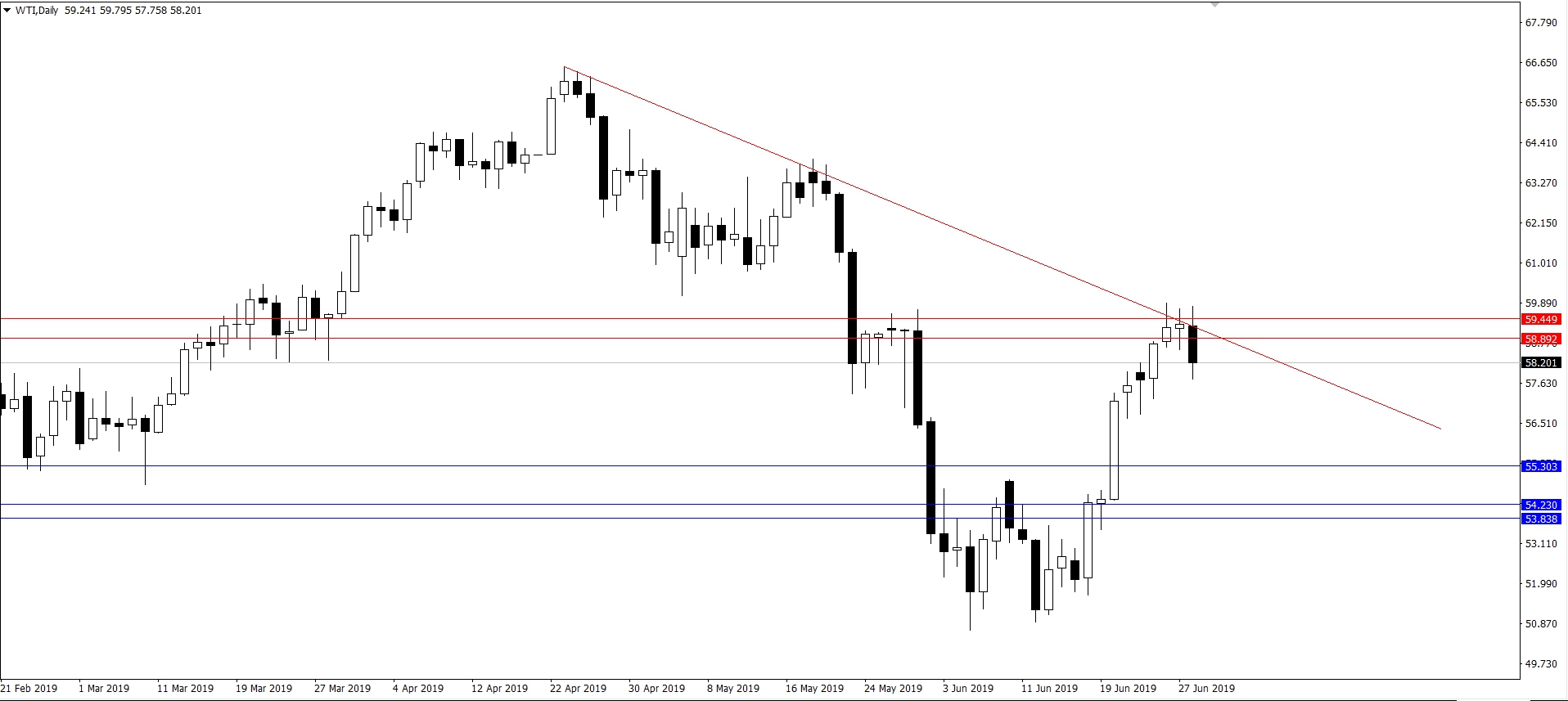 油的位置剛好來到我們一直以來很喜歡關注的關鍵價格(58.8~59.4),然後又搭配到一條簡單的下降趨勢線,如果轉向確認的話,新的下跌就又正式開始了,你準備好了嗎?