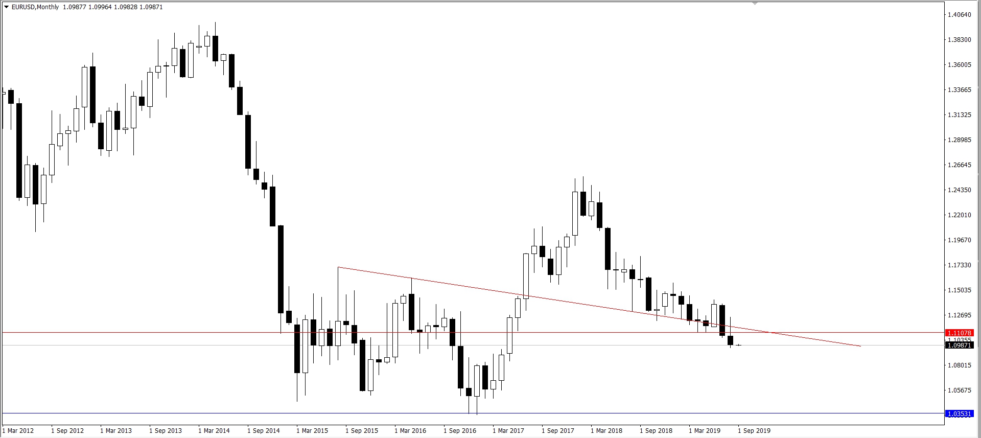 2019年9月歐元兌美元的價格走勢圖(月圖)