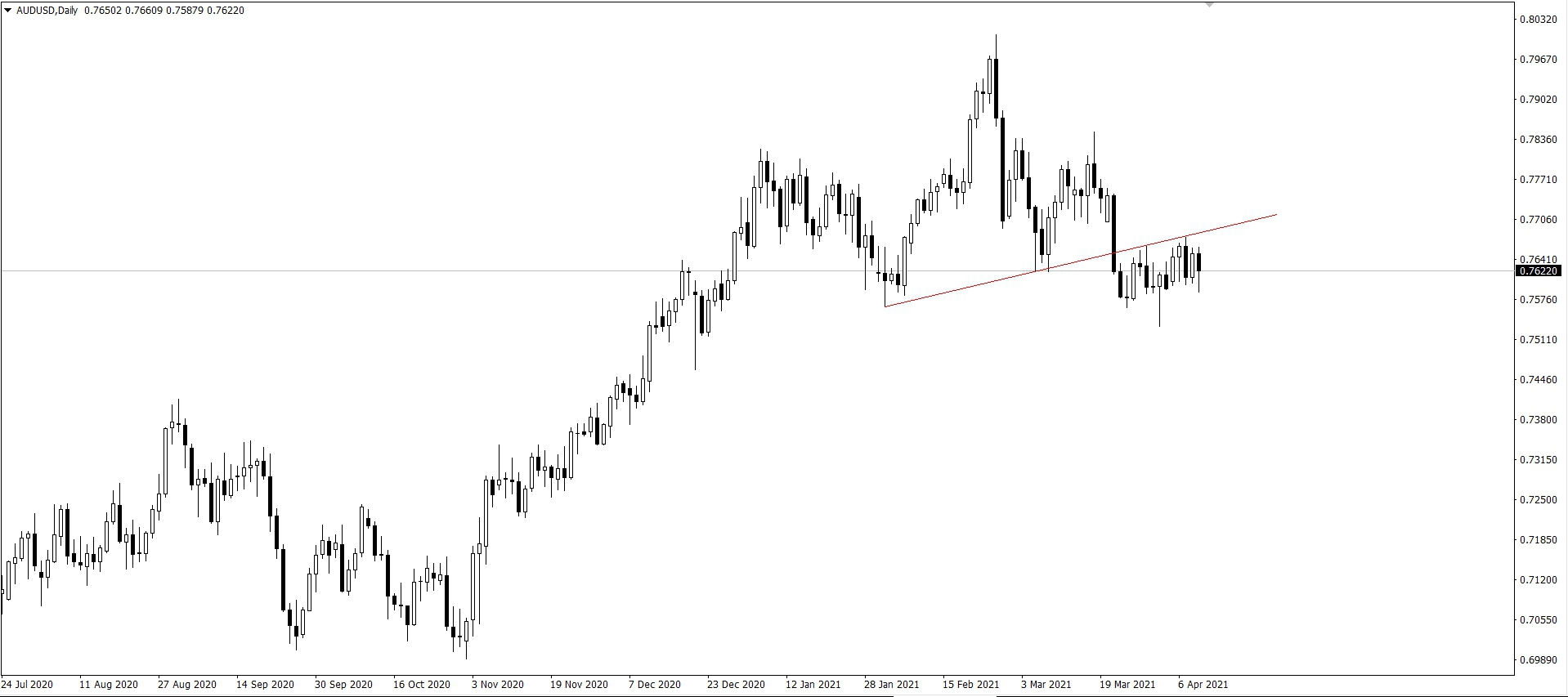 2021年4月澳幣兌美金的價格走勢圖(日圖)